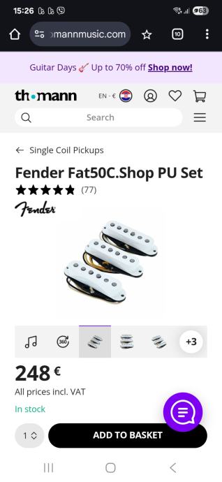 - Ugrađeni Fender FAT 50s Custom Shop pickupovi( originalni keramicki MIM PUs raspolozivi u cijeni)
