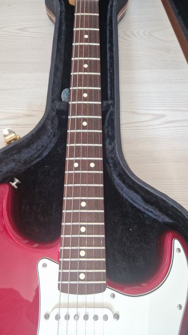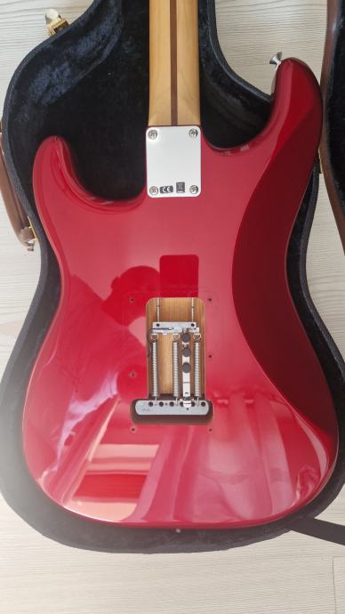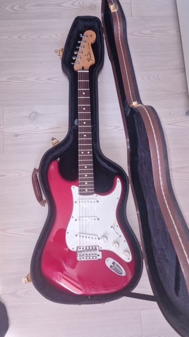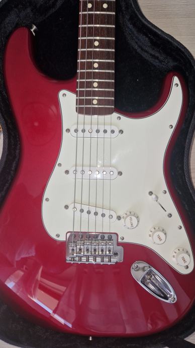 Prodajem Fender Stratocaster MIM u Candy Apple crvenoj boji, sa maple vratom u satin obradi i krasnim tamnim rosewood fingerboardom. Stanje odlicno, kao novo, bez ogrebotina ili ostecenja, pragovi na 99%.