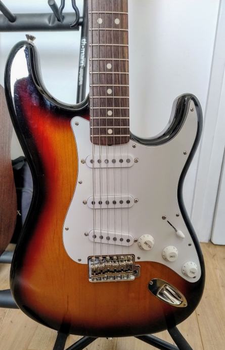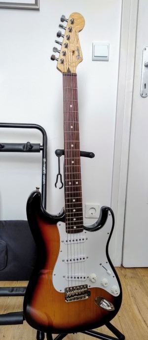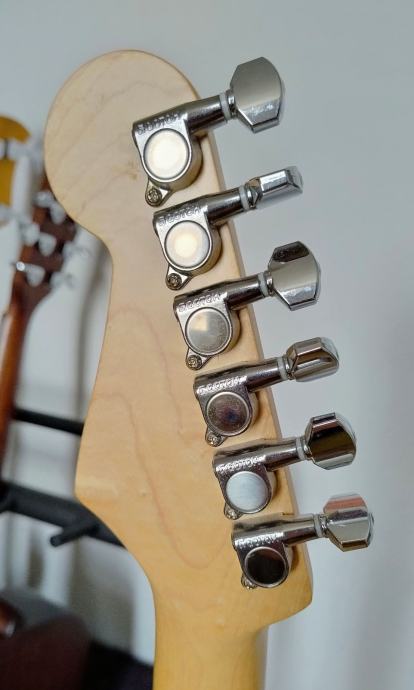 Prodajem japanski Fender Stratocaster iz 1994., mint stanje, nikad nije izašao iz stana. Napravljen u Fujigen tvornici. Pro setupiran s novom elektronikom (Michael Landau, Eric Johnson shema) i custom wound pickupovma (Q pickups Hendrix 60's) medium output. Gotoh hardware i brass uteg za tremolo. Sustain fenomenalan. Uz gitaru ide originalni gigbag i remen.