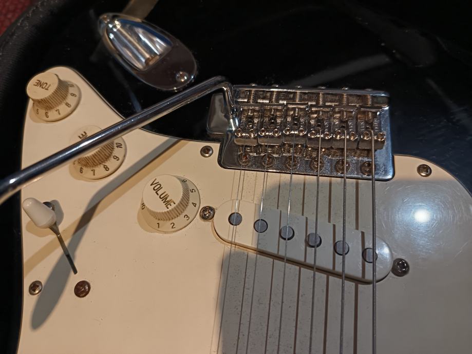Sadržani "Q"-pickupovi komplet ("Gilmour set") i Fender vintage bridge (naknadna ugradnja), tremolo.