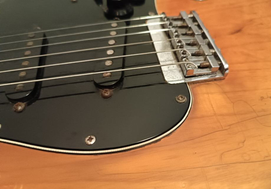 Na gitari sve original što je rijetko za naći na tržištu po ovoj cijeni. Pragovi mjenjani prije dosta godina što je uobičajeno za ovo godište, a sad bi ih trebalo dati pobrusiti/ispolirati i uraditi novi set up gitare prema želji novog vlasnika?