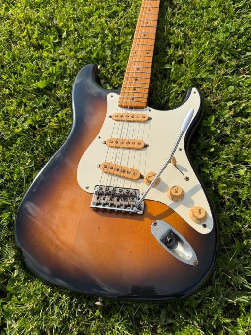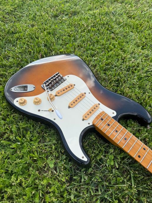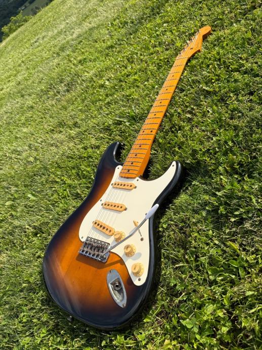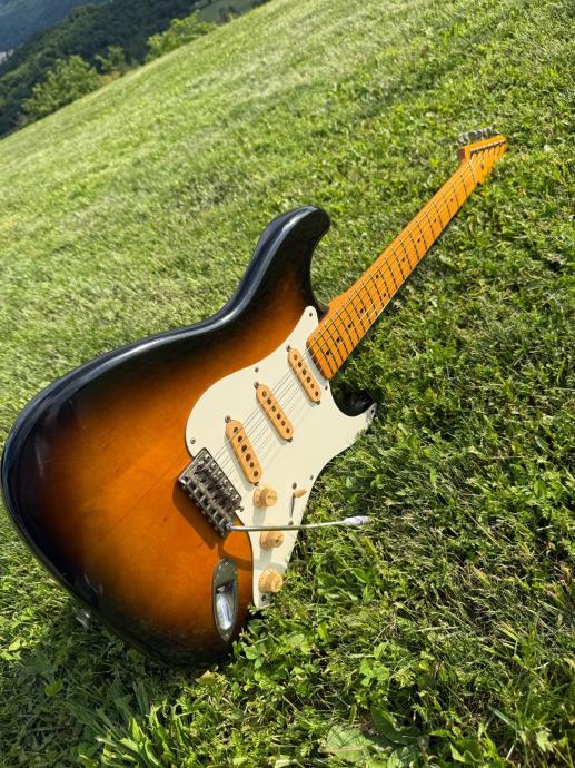 Prodajem Fender stratocaster reissue ST57 1990 godište. Made in Japan. Original pragovi, original alnico pickupovi(kasnije su koristili keramičke). Ima tragova korištenja, hrđa na hardware-u ali ništa strašno za gitaru staru 35 godina. Štim drži fantastično. Konture tijela, logo sve kao na 1957.