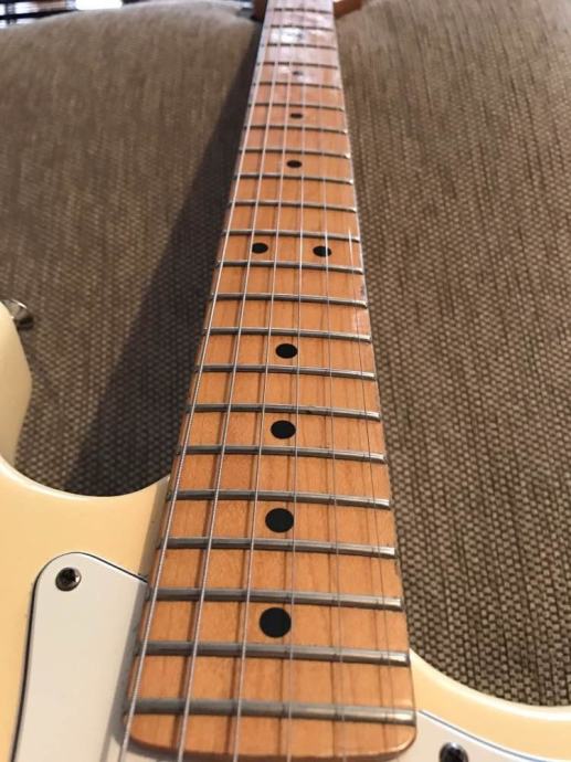 Prodajem Fender Stratocaster USA iz 1991. god. Olympic white, Fender Texas special pickupovi. Gitara je jako dobro očuvana i savršeno radi. Lokacija Split. Bez kufera je 7000 kn. Sa standardnim kuferom 7500 kn (crna unutrašnost) sa Fender deluxe kuferom (sa slike) 8300. Zamjene isključene. Molim da se javljaju samo ozbiljni kupci. Cijena je fiksna.
