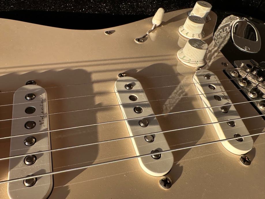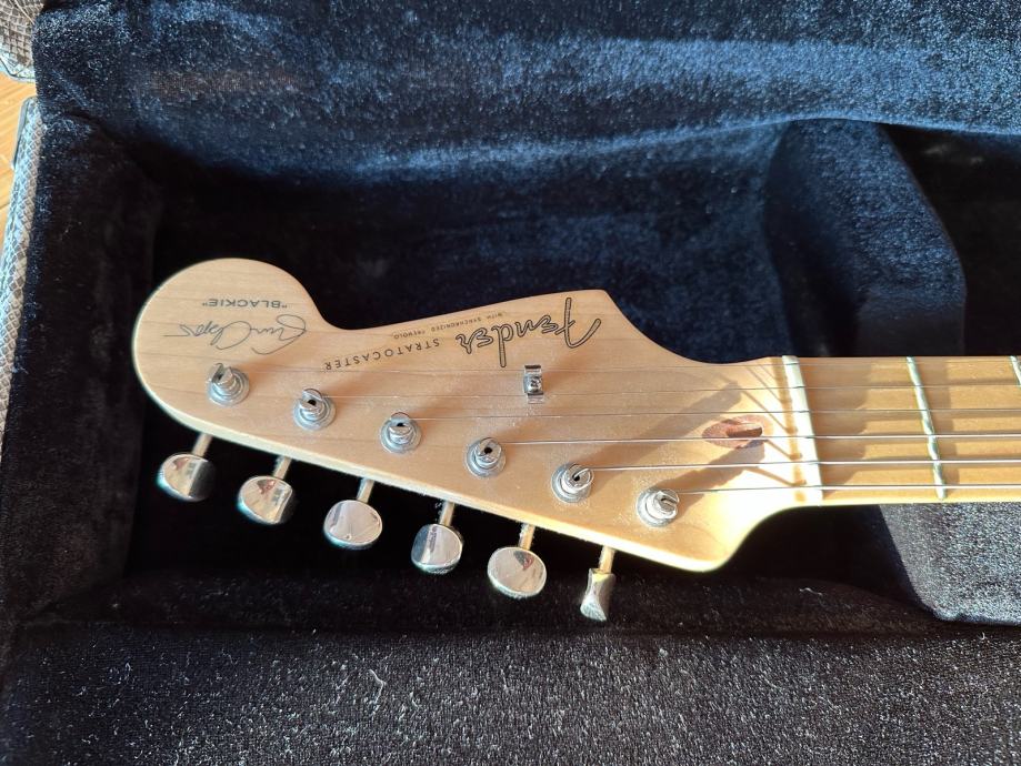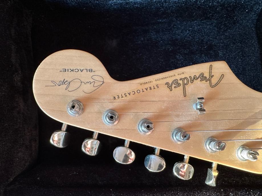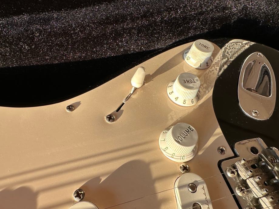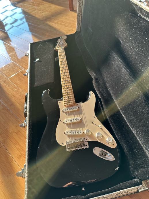 Prodajem Fender Stratocaster Eric Clapton Blackie Signature model, Made in USA. Gitara je iz 2006. godine, vrlo malo svirana i fantastično očuvana. Vintage noiseless pickupi, V shape neck, aktivni TBX sustav s aktivnim tone potenciometrom i mid boost-om. Mint stanje, predivan zvuk, odlično setupirana, meka za svirati, pragovi u dobrom stanju, sve originalno.