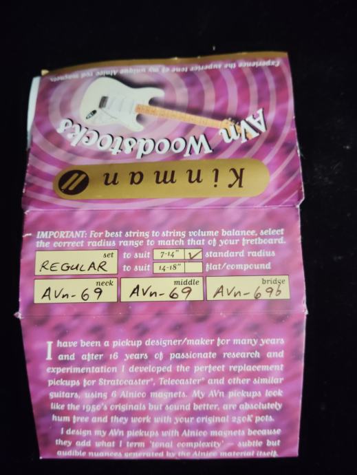 Ugrađeni Kinman noiseless pickupi (Avn Woodstocks 69s).