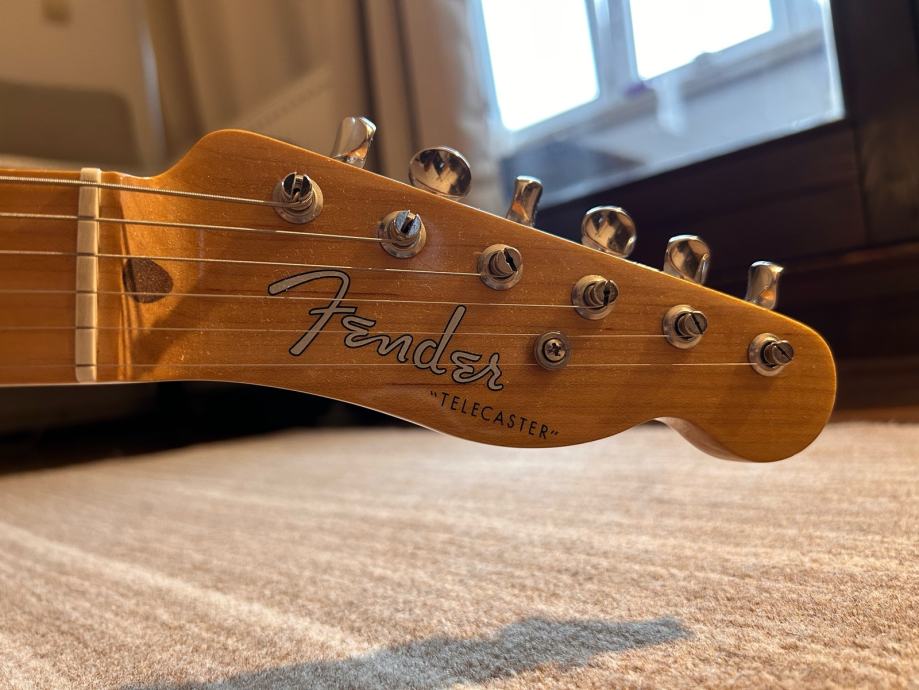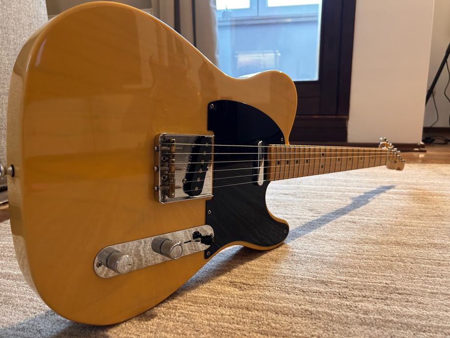 Designed by Fender Custom Shop Master Builder Christopher Fleming, the Baja Telecaster guitar features an ash body with a thin polyester finish, soft V-shaped maple neck with 21 medium jumbo frets, custom vintage-style Broadcaster bridge pickup and custom Twisted Tele neck pickup, four-way pickup switch and S-1 switch.