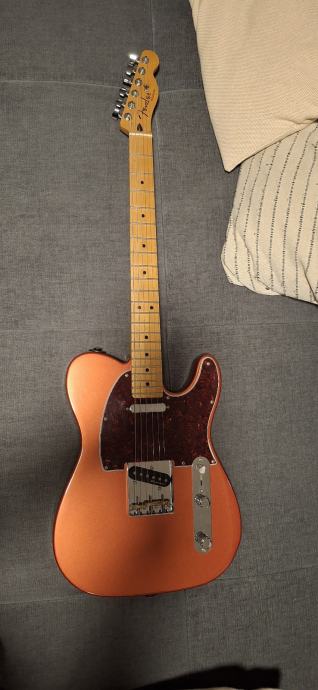 Prodajem fenomenalnog Telca Apple candy red boje (meksikanac). Noiseless magneti s opcijom uključivanja magneta u seriju gdje glume humbucker (volume pot). Locking fender deluxe tuneri. S gitarom dolazi, ako nemate nimalo ukusa, bijeli pickguard. Vrat od javora i udobnog C oblika. Jedinu manu gitare (moderni most) sam popravio tako da sam stavio ispravni most pa je sad dobila još više na twangu. Gitara je lagana i setupirana. Gitaru je moguće isprobati na adresi u oglasu ili u Solinu. Jedino osobno preuzimanje dolazi u obzir.