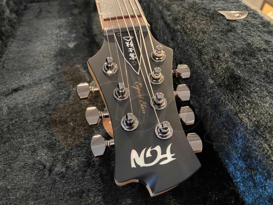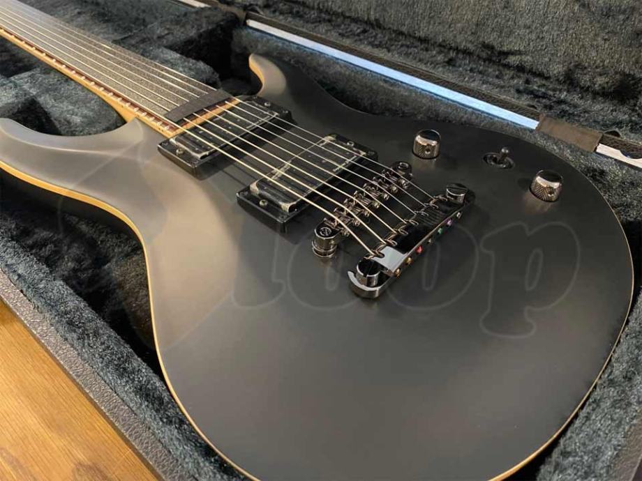 Custom 7-žičana električna gitara karakterističnog oblika proizvedena u tvornici najboljih gitara na svijetu – Fujigen! Vrhunsko drvo i “samurajska” izrada se osjeti i čuje na prvi pogled / dodir / ton. Prednja ploča od tvrdog javora, tijelo gitare od mahagonija, vrat od javora + orah 5ply, prstohvat od palisandera (rosewood), 24F praga u kombinaciji s patentiranom C. F. S. tehnologijom koja sadrži fino obrađene i lagano zakrivljene pragove koji su postavljeni u prstohvat s ciljem povećavanja preciznosti tona i stvaranja čišćeg i dužeg sustaina + istinskih harmoniksa. OriginalTone Pross TP-7most, 2 xSeymour DuncanBlackouts AHB-1 humbucker pickupi, jedan potenciometar glasnoće i jedan tonski potenciometar, 3-polni prekidač između magneta. I ono najvažnije: MADE IN JAPAN!