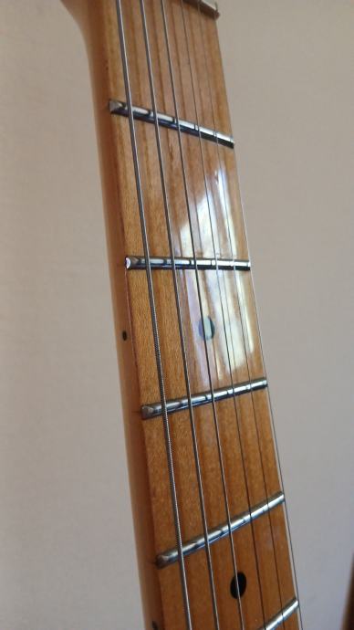 Gitara vrlo dobrom stanju. Vidljivi tragovi korištenja, ali ništa strašno. Funkcionalno sve besprijekorno, osim što potovi malo šume pri okretanju. Ništa strašno. Boja je nešto toplija nego što je ispala na slikama (najbolje se vidi boja na trećoj slici).