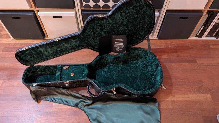 Prodajem Gibson ES-165 Herb Ellis iz 2007. godine. Gitara je u mint stanju i nema nikakvih modifikacija osim što je zamijenjen knob volume potenciometra iz čisto estetskih razloga. Originalni top hat knob je u koferu za slučaj da kupac preferira gitaru u 100% originalnom stanju.