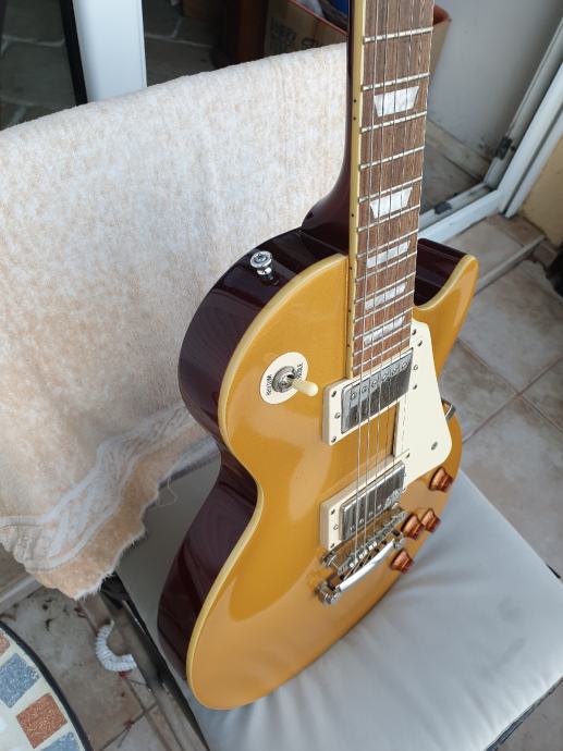Potpuno nova gitara...standard gold top sa koferom....moze zamjena za stratocaster ili telecaster.... sg ....prs...vox ili marshall pojacalo...