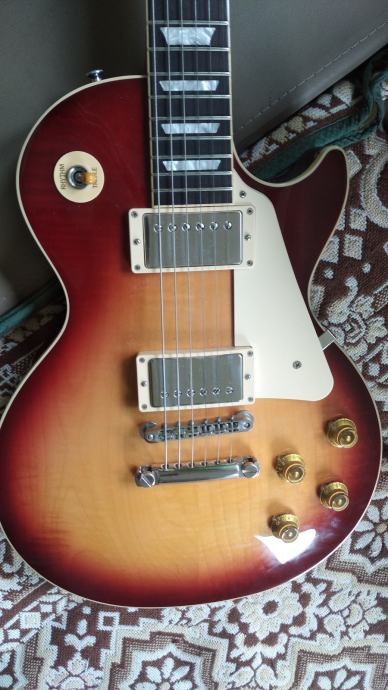 Gitara u mint stanju,2021 godine proizvedena,bez weight reliefa,umjesto Grovera stavljeni Kluson navijači,vrlo mekana za sviranje.Moguća zamjena za Gibson LP 50 zbog debljeg vrata....gitarsko pojačalo ili strat,telecaster,PRS tip gitare.Za keš bi se dalo još nešto pregovarati!