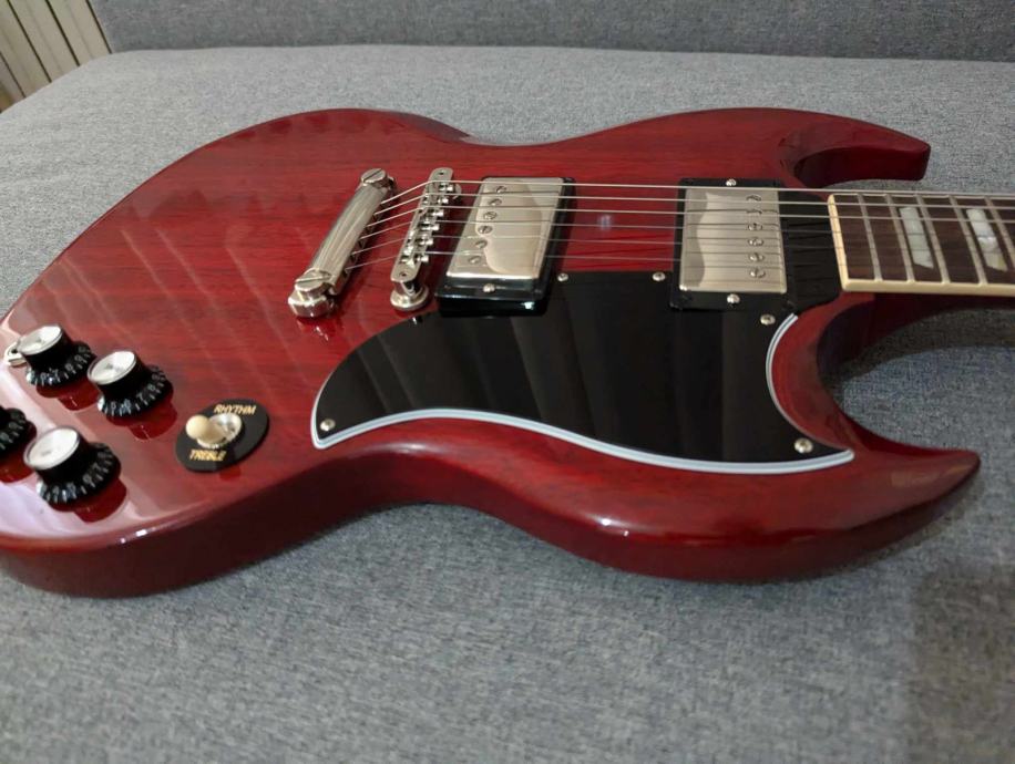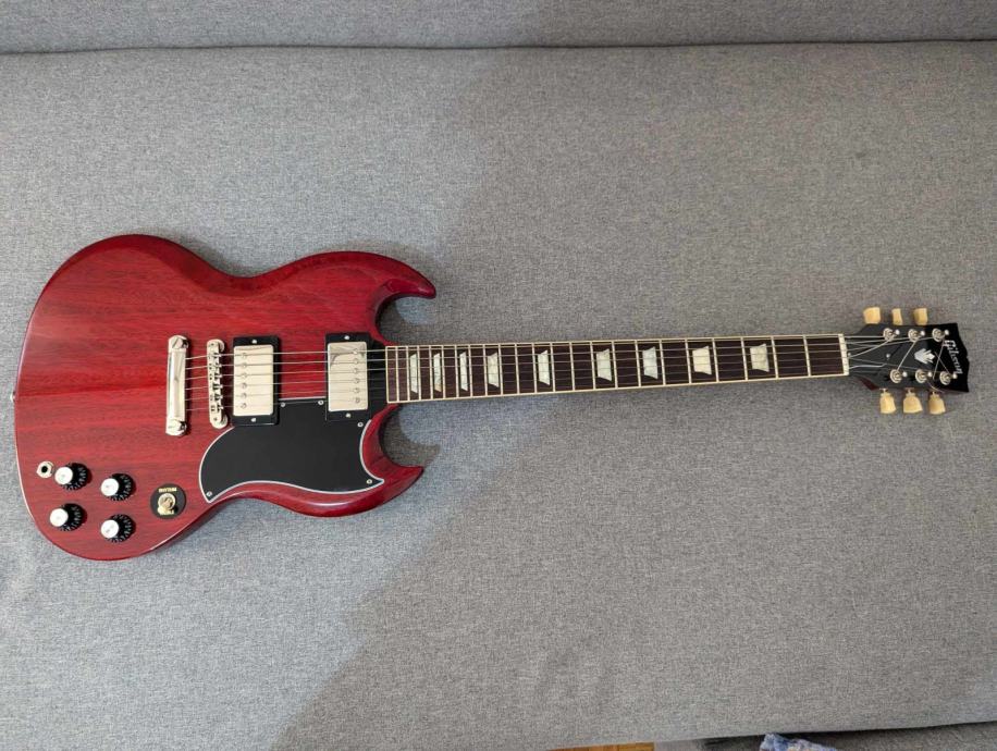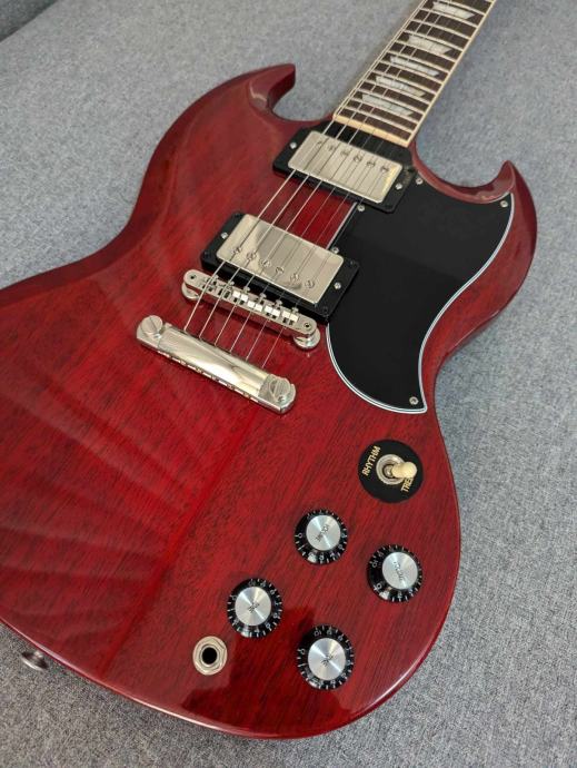 Prodajem Gibson SG-a, kupljenog novog na Thomannu prije godinu dana. Nije nošen nikad van stana i nema nikakvih oštećenja/ogrebotina, tako da je praktički kao nov. U cijenu je uključen i originalni kofer koji je došao s njim, te garancija (svi Thomannovi proizvodi imaju 3 godine garancije). Dodatne slike/račun na upit. Moze i zamjena za dobar Les Paul.