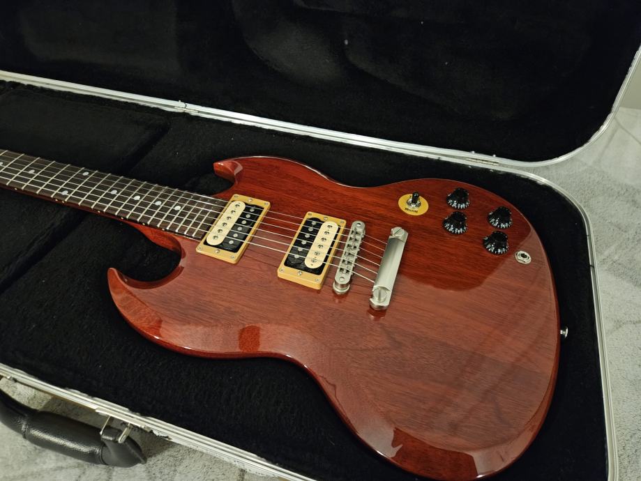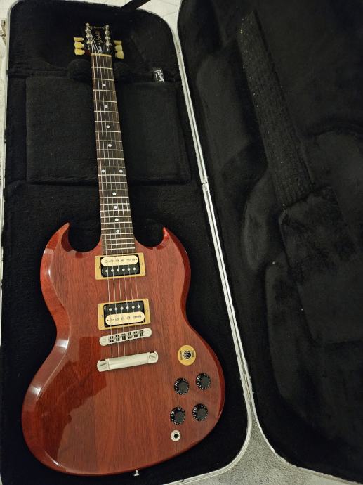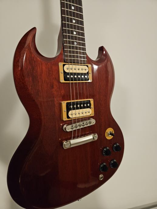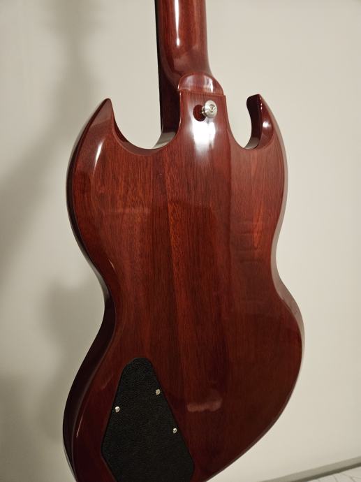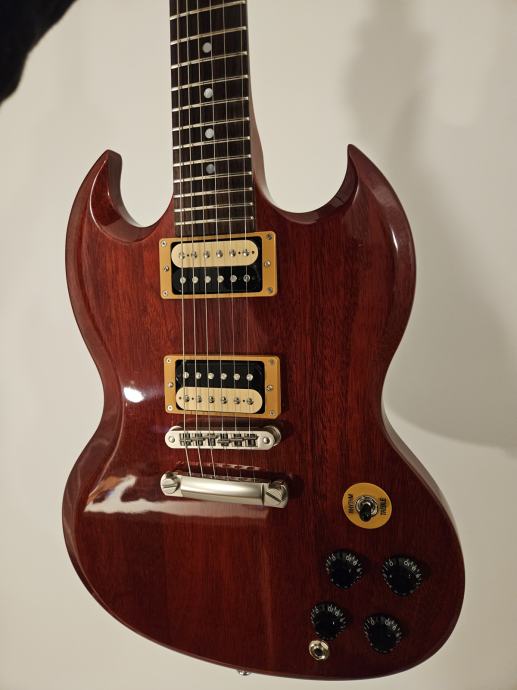 Gibson Sg Special, moderno opremljen SG,za dinamicno sviranje. Za one koji zele vise i bolje opremljen SG od klasicnog modela. Klasicna Heritage Cherry boja skriva mnoge moderne dodatke na ovom SGu. Laganog tijela,i tankog vrata za brzo kretanje po vratu gitare. Bez pick guarda,tijelo i oblik SG-a dolazi do izrazaja,sto je rijetka karakteristika na SG-u i vecinom se moze naci na skupljim modelima. Kao i 24 polja.