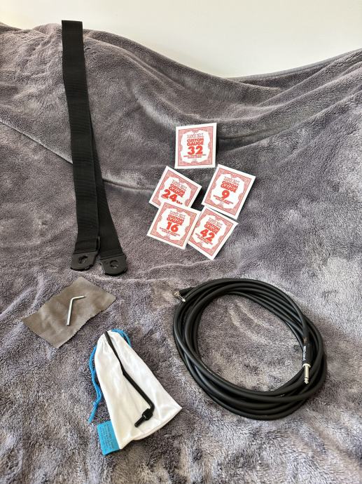Uz gitaru dolazi whammy bar, te uz kufer ključ za zaključavanje.