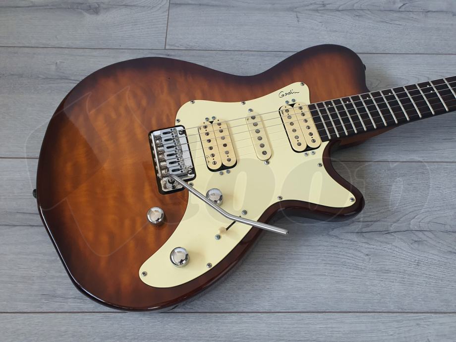 električna gitara s HSH konfiguracijom pickupa i tvornički ugrašenim L.R.Baggs piezom. Poseban izlaz za elektriku, a poseban za akustiku. Tijelo od mahagonija sa quilted maple topom, mahagonij vrat, Godin GHN1 (Neck) GS1 (Middle) GHB1 (Bridge) pickupi; L.R.Baggs piezo pickup; zasebni volume za pickupe i za piezo. Vrlo iskoristiv instrument u live nastupima, jer u jednoj gitari imate oba zvuka.