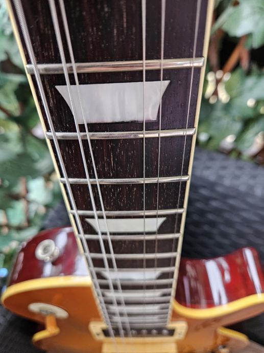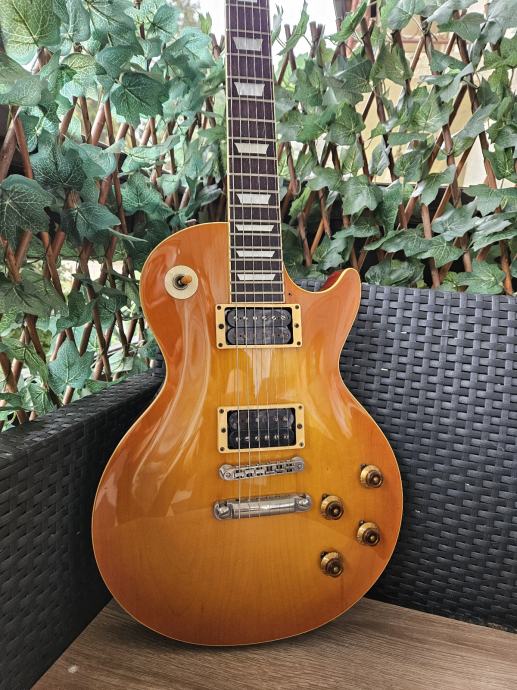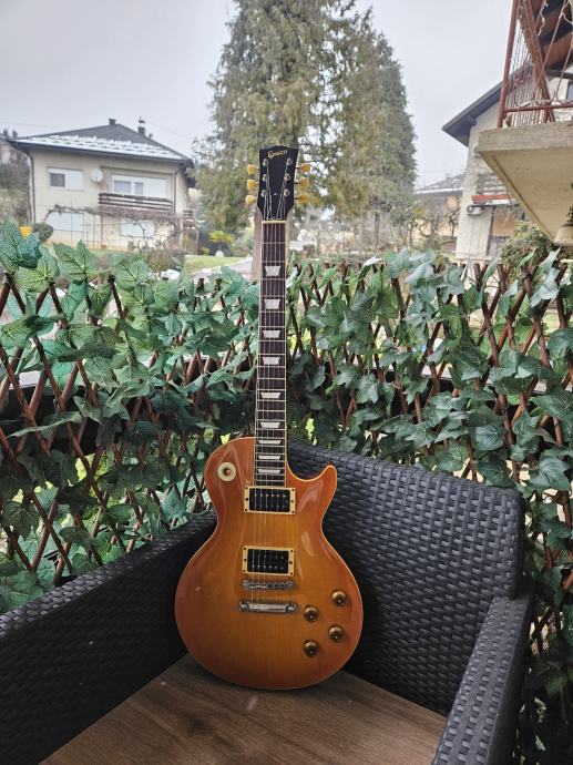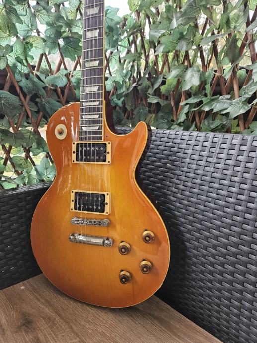 Prodajem ovaj predivni Greco Les Paul made in Japan rađen po uzoru na Gibson 1959 Standard Les Paul . Gitara je Tokai made ( no serial) 1989/1990 godiste kada je Tokai uletio Fujigenu u pomoc ispunjavanju kvoti za Greco za jače modele s obzirom je Fujigen bio dosta zatrpan ( Fender Japan, Ibanez itd) i kao takva jedan od rjeđih primjeraka a pogotovo u ovakvom honey burst finishu. Model bi bio EG59-60, odnosno 65. Meni osobno jedan od najboljih primjeraka Les Paula koje sam imao/svirao. Neck je medium ka 60s slim profil. Ugodan i fast.Tezina lightweight za lp, u rangu custom shop Gibsona. Stanje je 100% original osim pickupa, prijasnji vlasnik ih je premotao kod Thomas Torstena i maknuo pickup covere (pretpostavljam po uzoru na Slash Jessica Les Paul jer su specke kao i Slashovi pickupi, vise hot su).