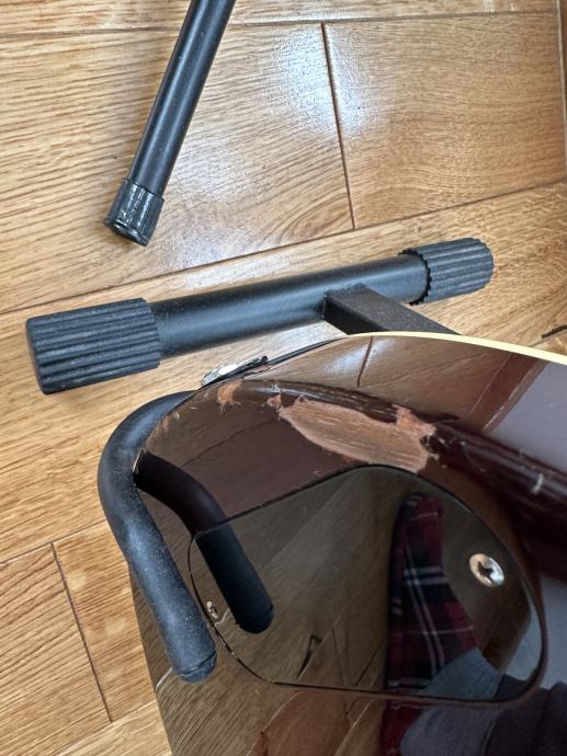 Gitara ima malo oštećenje na laku s donje strane što je vidljivo na slici, a ne utječe niti na zvuk niti na osjećaj sviranja jer nije u razini hvata prilikom sviranja, također izraženije je na slici nego uživo.