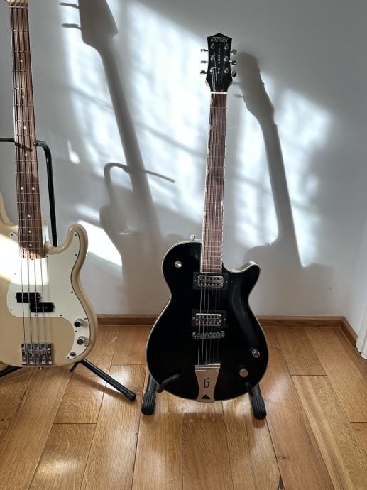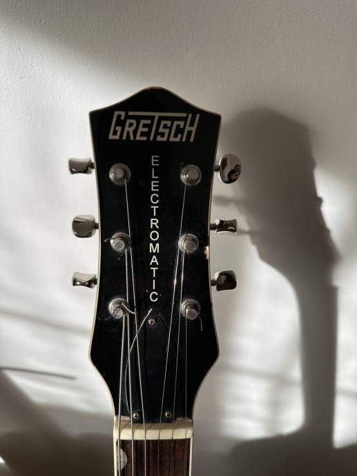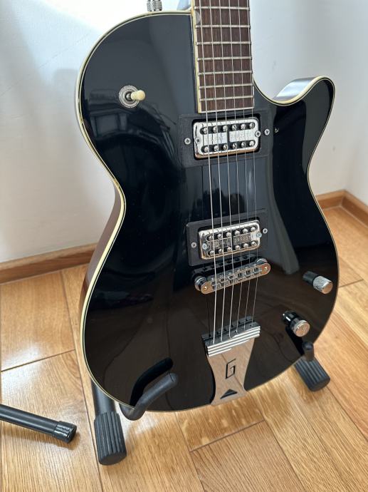 Pragovi su u dobrom stanju, vrat je udoban, šipka radi uredno, sva elektronika je u super stanju, nema šuškanja ili nekih neželjenih pomaka i slično. Tijelo je od mahagonija s top-om od laminiranog javora u crnoj boji. Uz gitaru dolazi i dvoslojni pearloid pickguard s Gretsch logotipom.