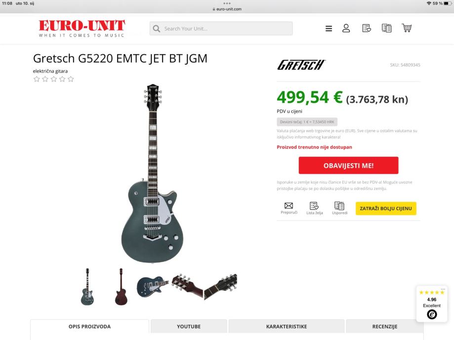 Potpuno nova,nekorištena gitara.Dolazi sa Thomannovim deluxe gigbagom.Bez zamjena molim,cijena je više nego fer.Troškovi uračunati u cijenu.Gitaru u ovoj jetglo metalic boji limitirana je serija.