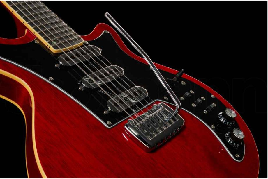 električna gitara Harley Benton BM-75 Trans Red Deluxe Series koja dočarava izgled i zvuk gitare kakvu svira Brian May.