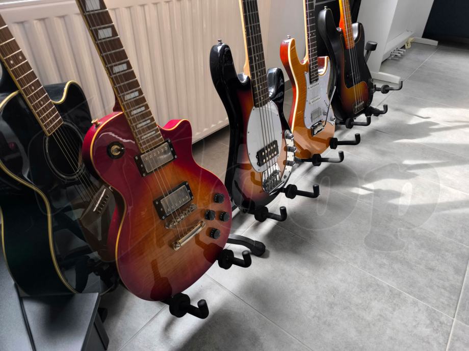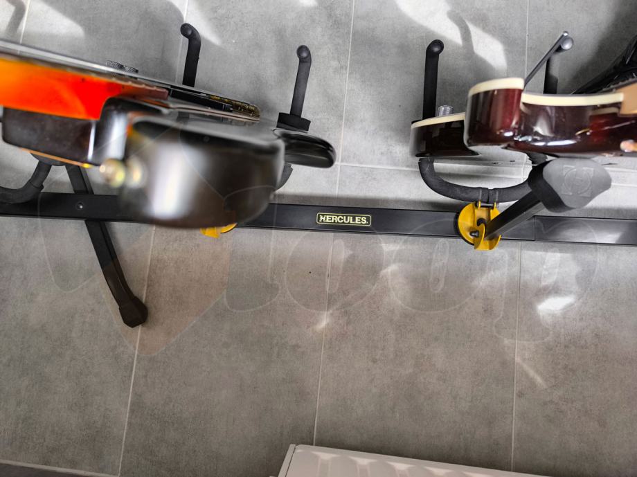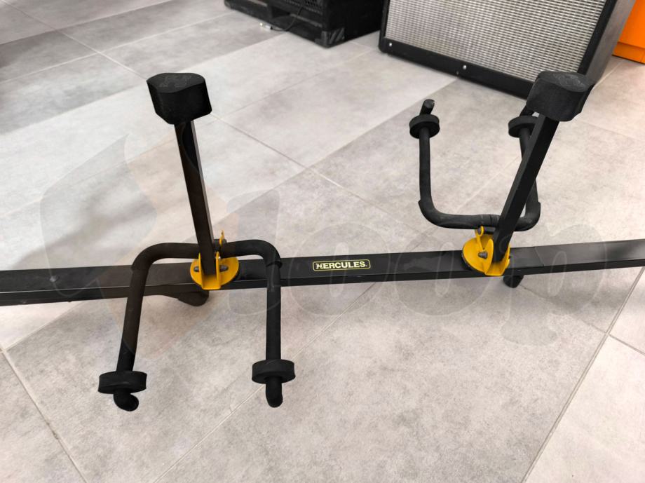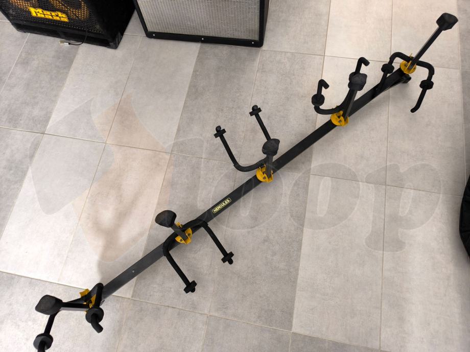 podni stalak za 5 gitara ili slične glazbene instrumente. Čvrsta i kvalitetna konstrukcija, mogućnost sklapanja kako bi tijekom transporta zauzimao manje prostora, dijelovi koji drže instrumente obloženi su sa spužvom. Stalak idealan za električne, akustične i bas gitare. Mogućnost rotiranja svakog stalka i podešavanja nagiba. Hercules kvaliteta!