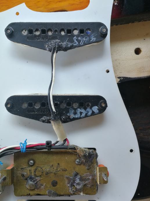 Prodajem navedeni HSS pickguard za strata koji se sastoji od 2 Fender Texas special singla i Humbackera Dimarzio super-distortion 1979 koji je splitan da se može koristiti i kao singl, nema nikakvih šumova ili zujanja, i svako ko se razumije zna kakav sound se dobiva iz tih pickova.. ;)