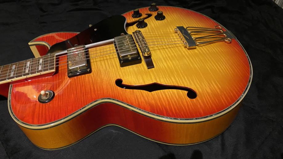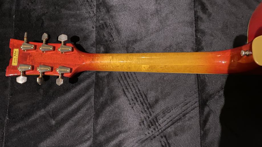 Član sam zajednice Ibanez Collector World, nakon savjeta sa zajednicom utvrdili smo da je ova 2616 jedina iz prve godine postojanja firme Ibanez, koja ima oba, drveni i čelični bridge, originalnu knjižicu i kofer 1973 je prva godina, kad je Ibanez počeo izraðivati električne in elektro- akustične gitare. Prvu godinu su izvozili samo u Evropu. Prvu godinu 1973 još nisu stavljali serijski broj (pre serial number), pošto nisu znali, koliko će brand da se prodaje i dali će uopče obstati. Na zadnjoj strani glave je originalna naljepnica prodavača-dučana. Gitara je cjela izraðena ručno i ima nitro-cellulose lak. Gitara je skoro mint, samo udarac staljka za note na prednjem cutawayu.Body flame maple , neck 3 piece curly maple, rosewood fretboard, Ibanez super power humbuckers, nitrocellulose lacquer, color CS- cherry sunburst, goldplated hardware, smooth tuners, real mother of pearl inlay, težina 3188g.Moguća dostava do Zagreba- king kros.