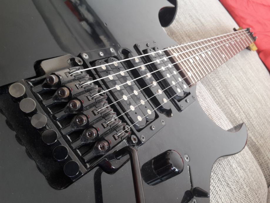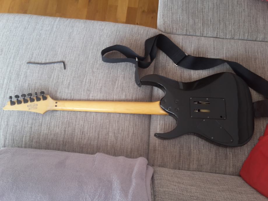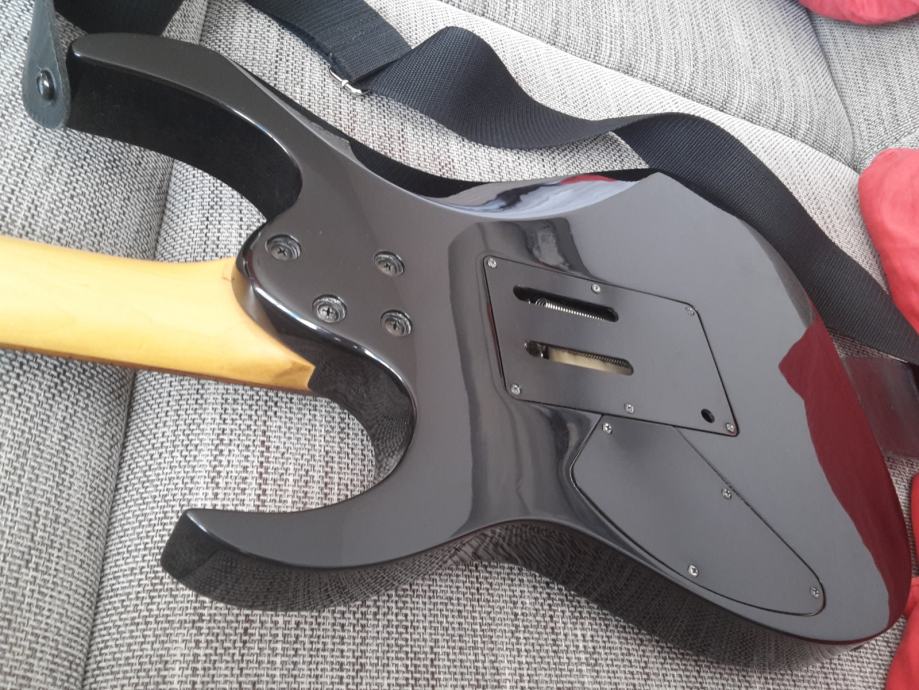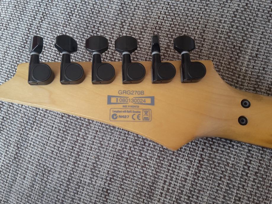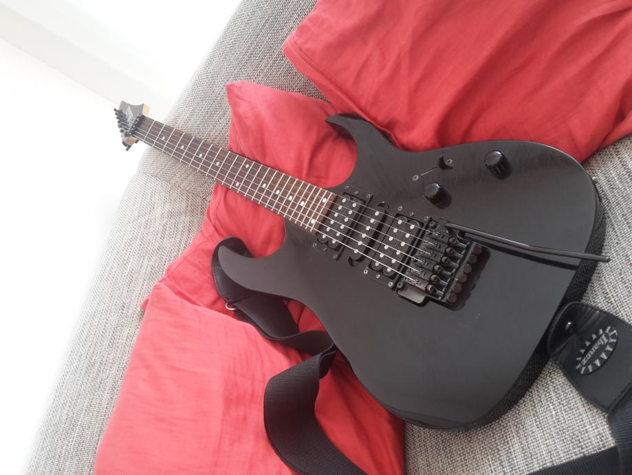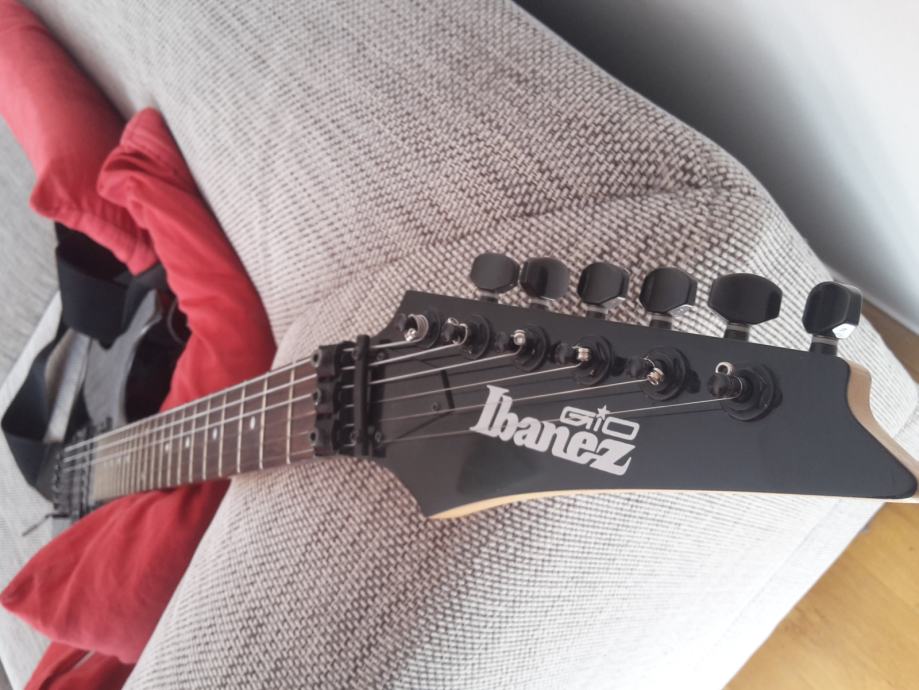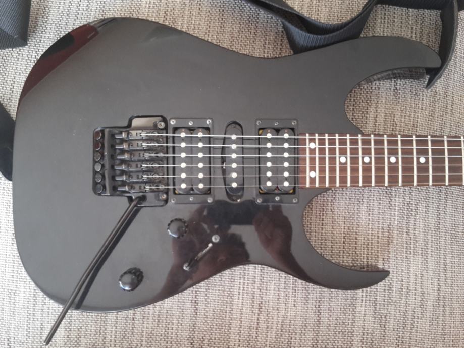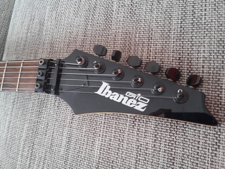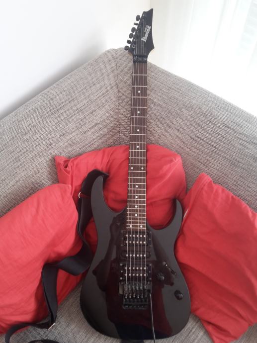 Električna gitara Ibanez GRG 270B u super stanju. Prodajem ju jer mi je višak. Gitara je malo korištena i odlično očuvana. Predivna gitara sa predivnim zvukom. U nazivu modela veliko B označava boju: black. Tijelo gitare je izrađeno od lipe, a vrat iz jednog komada javora (maple neck). Gitara ima zavidan sustain i napravljena je od kvalitetnog drva. Najbolje da je sami isprobate i uvjerite se u užitak koji ova gitara pruža. Odlična gitara za napredne, ali i početnike. Gitara ima 24 polja, te nije teško ni zadnje polje dosegnuti kao što to zna biti slučaj kod nekih gitara jer ima tvz. cutaway. Poznati ibanezov floyd rose sistem zaključavanja žica osigurava da se gitara ne raštimava. Gitara ima 2 humbuckera i jedan single pickup. Uz gitaru ide ručica, remen, kabel za pojačalo, svi potrebni imbusi te rezervni feder i locking nut. Uz gitaru je moguća i kupnja stalka i futrole. Prvi sam vlasnik, posjedujem i račun. U guitar shopu je nova koštala 2600 kn. Ja tražim manje od pola cijene, a gitara je kao nova. Dolazak radi probe i kupnje moguć u Zagrebu u Dubravi. Zamjene moguće samo za efekt pedale za gitaru!