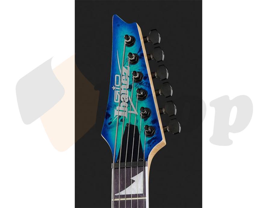 Električna gitara s tijelom od Okoume drveta, javor vrat i Purple Heart hvataljka, 2 IBZ 6 humbuckera, 5-Way switch. Dolazi u prekrasnoj Aqua Blue boji.