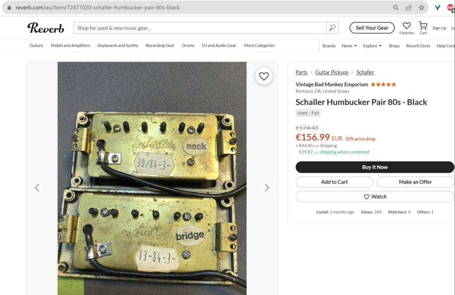 Magneti upgrade -vintage Schaller, Bridge 8.3 K ohms, Neck 7.3 K ohm