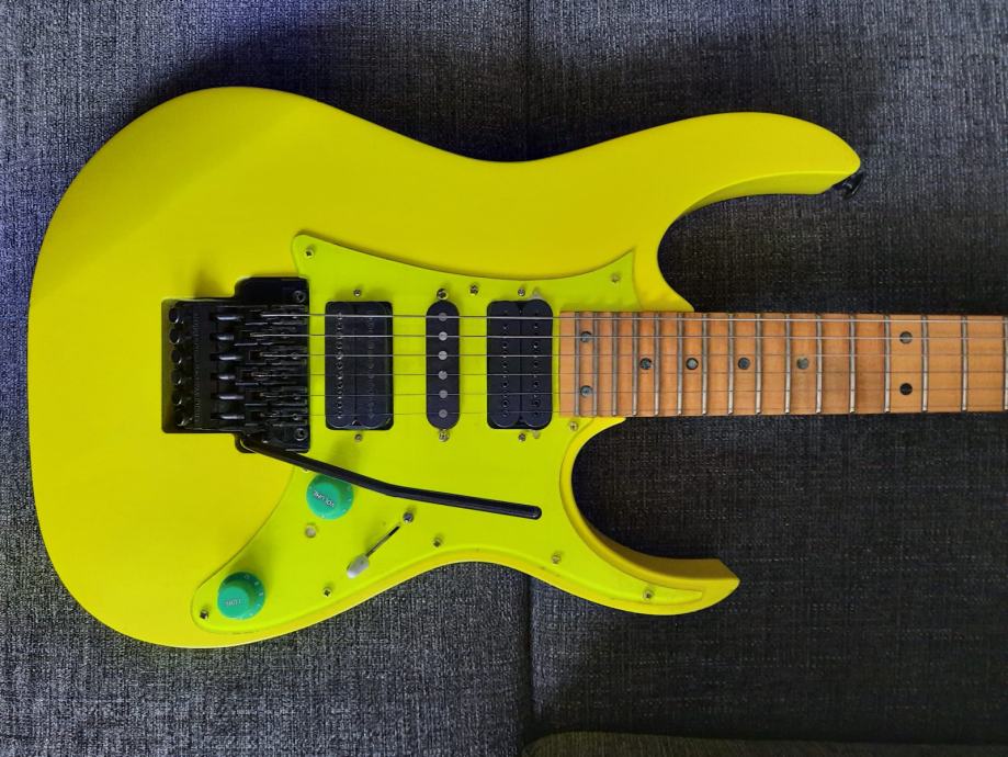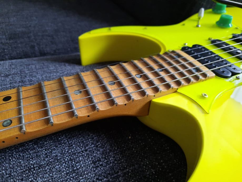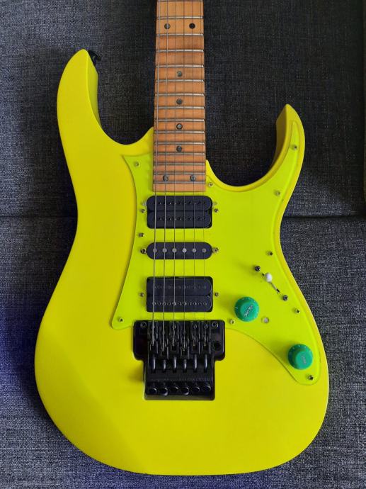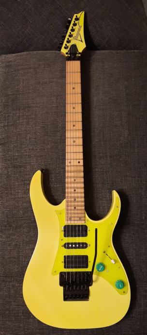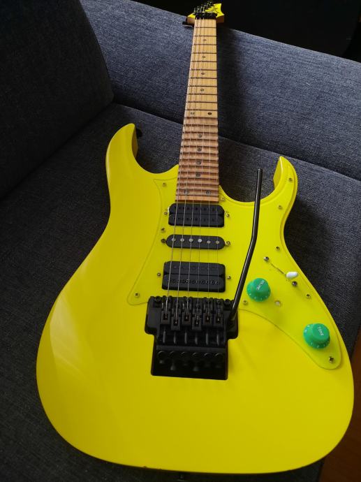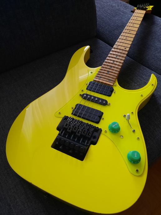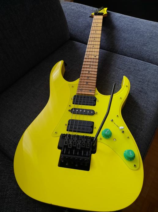 Original, ne reissue! Ova gitara RG 550 je napravljena 1999 u Japanu. Nije usporediva s modernijim rg550 modelima u smislu izrade. Najpoželjnija boja od svih. Vrat je malo deblji od ostalih RG modela koje sam isprobao. Pickupovi su američke proizvodnje. Scalloped pragovi između 13 i 24 polja.