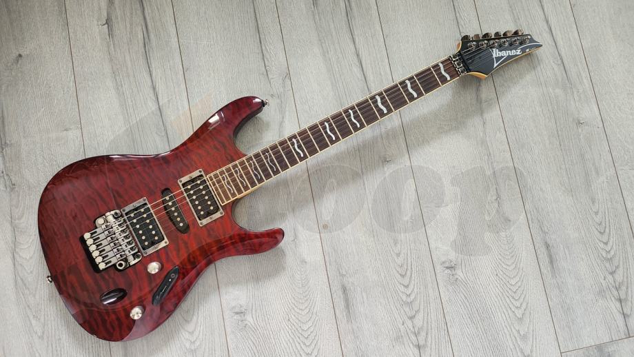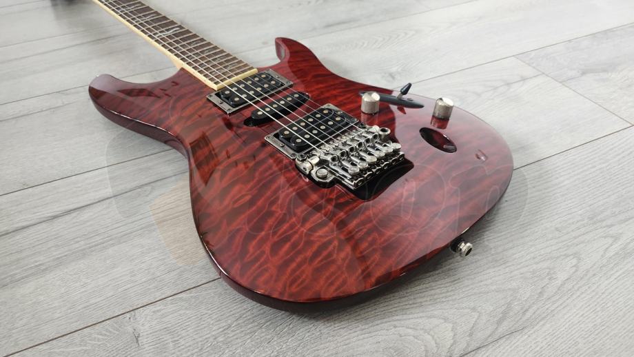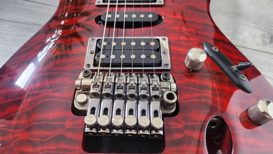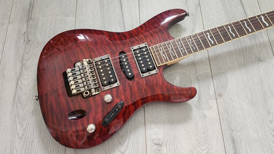 odlično očuvana električna gitara Ibanez S470 DX QM, made in Korea, 2004. godina. Tijelo od mahagonija s prekrasnim quilted maple topom.