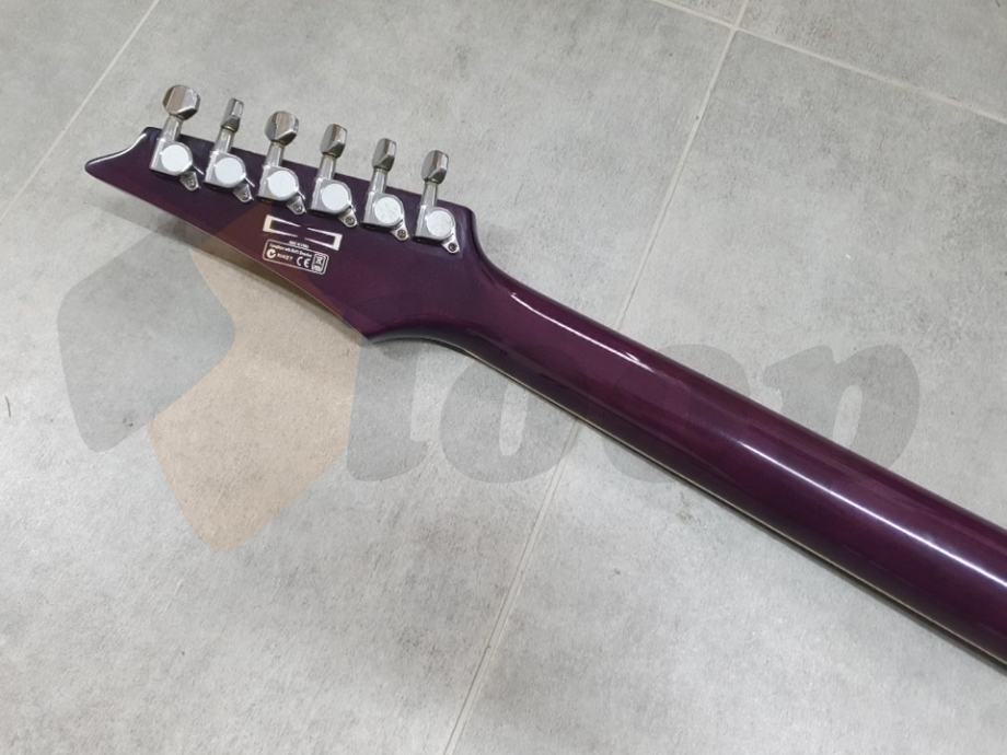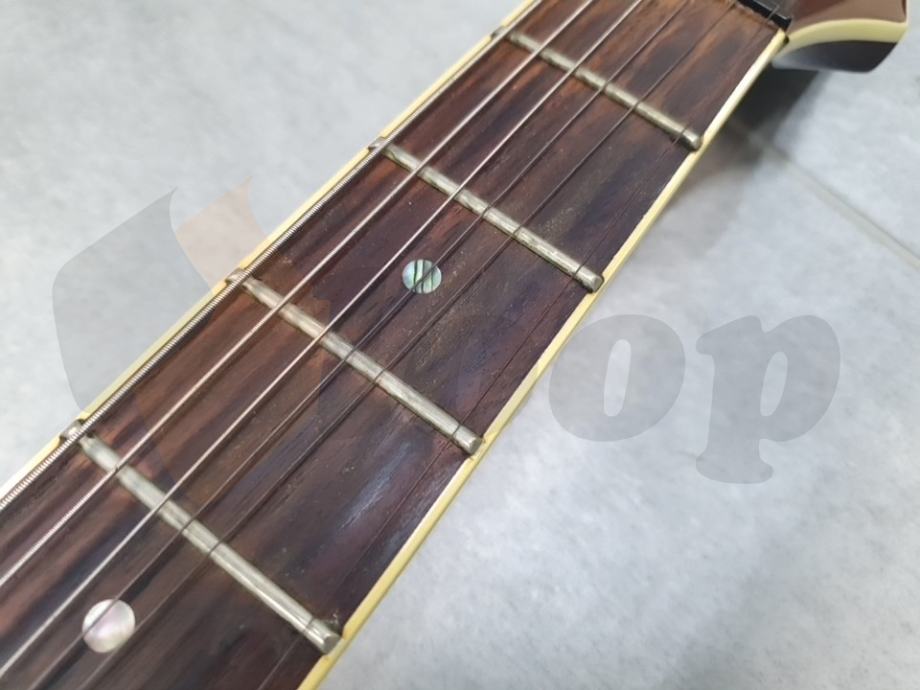 Električna gitara s tijelom od mahagonija, set-in neck maple neck s 22 polja, rosewood fingerboard s bindingom i abalone dot position markerima, Sat PRO tremolo (Wilkinson).