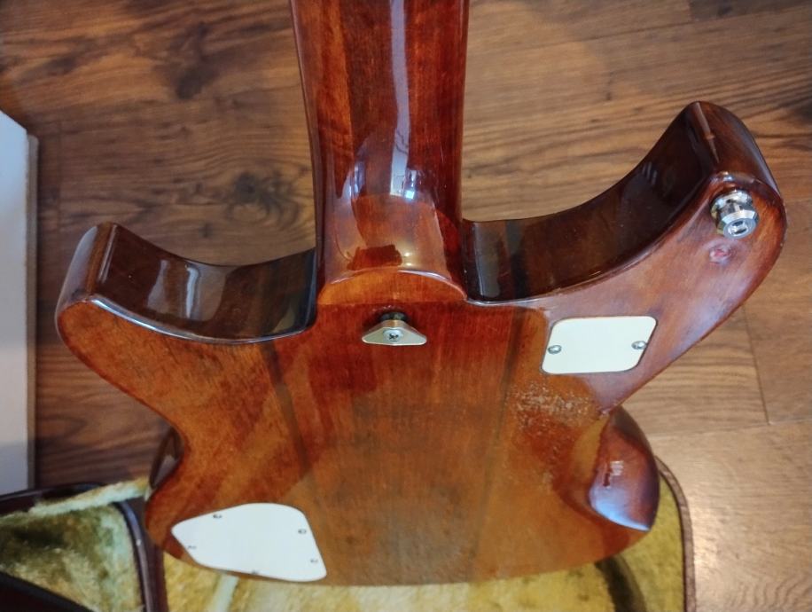 Na original dijelove, kao i rad profesionalca je utroseno zbilja dosta novca te sam sjestan da se gitara nece prodati za utrosenu vrijednost ali i posjed intrumenta zeljene kvalitete ima svoju cijenu. Mislim da je gitara izradena od Javora i Mahagonija s "crtom" od Oraha izmedu spojeva.