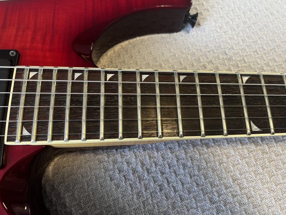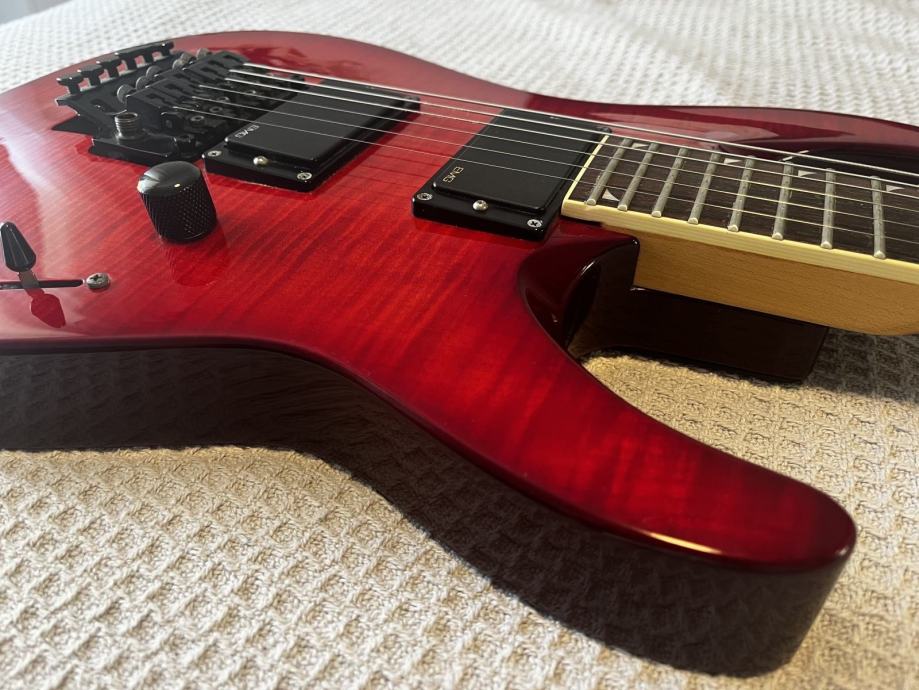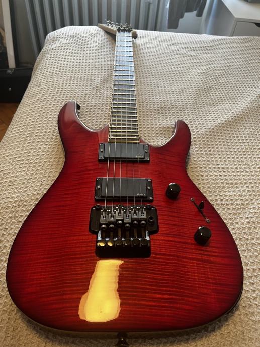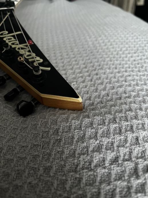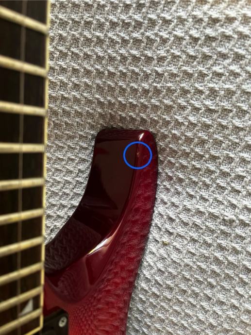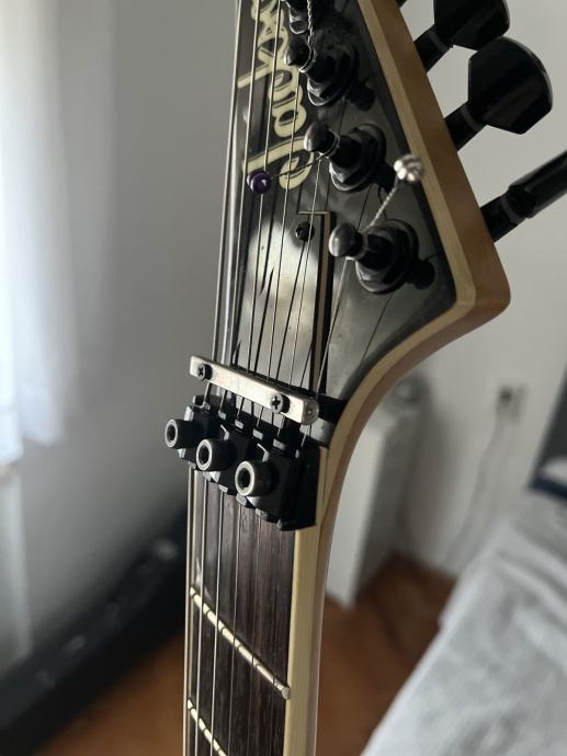 Trenutno stanje gitare je kao na priloženim slikama, na upit mogu poslati još koju sliku. Plavim kružnicama označena su jedina oštećenja koje instrument ima. Uz gitaru dolaze 2 inbusa (locking nut i floyd rose) kao i ručica za tremolo.