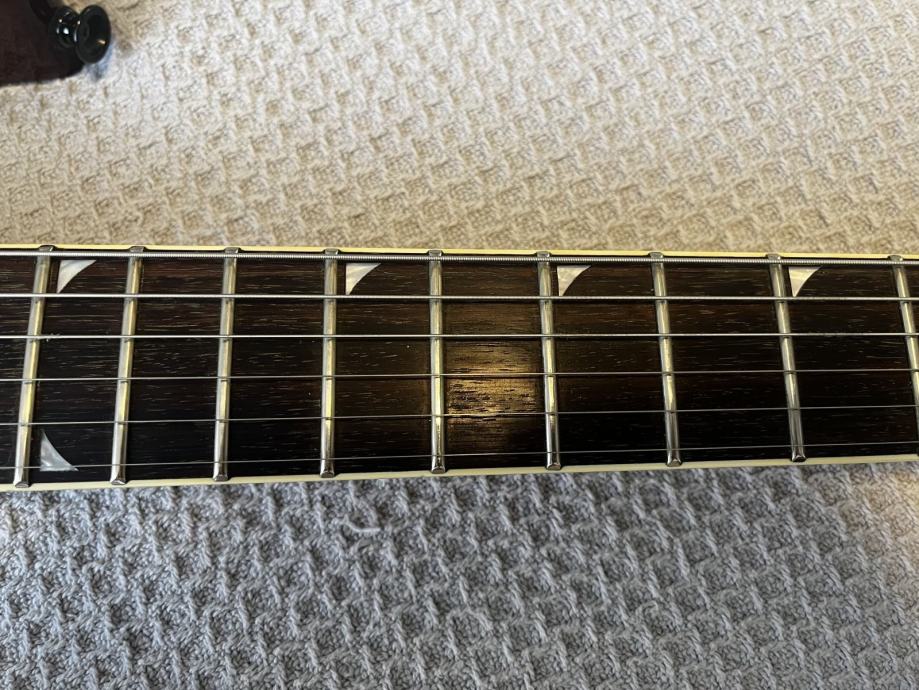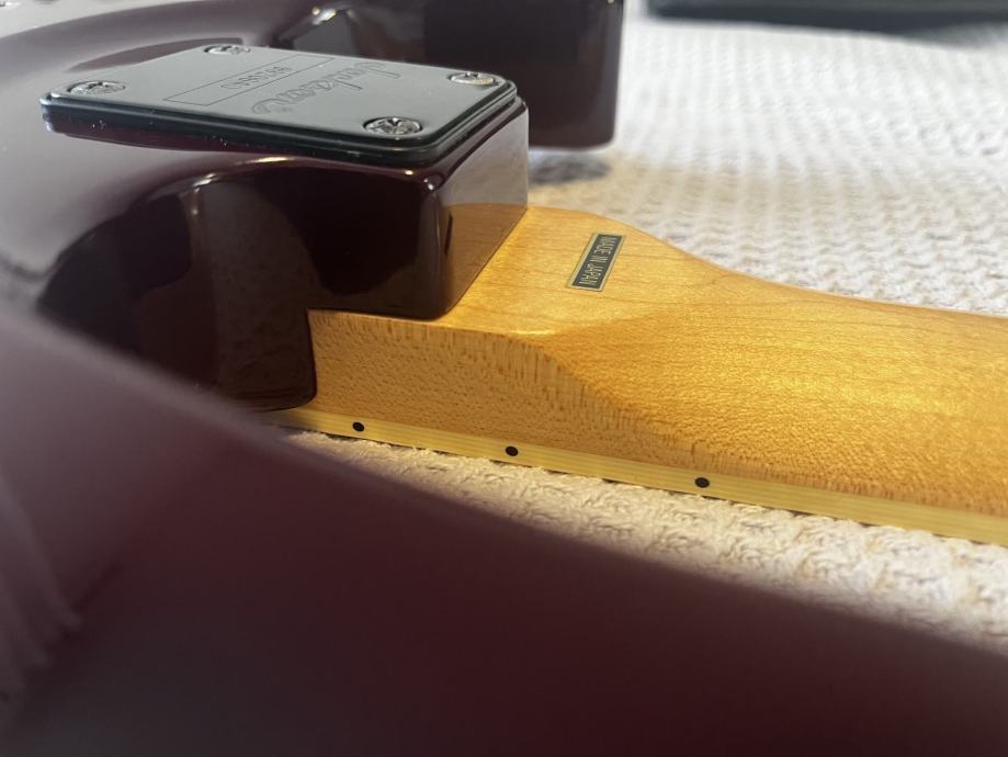 Gitara je svježe setupirana u E standard (nove D'Adario 9|42 - EXL120). Na glavu gitare je dodan string retainer bar koji je vidljiv na priloženim slikama. Također, oštećenje na glavi gitare je sanirano.