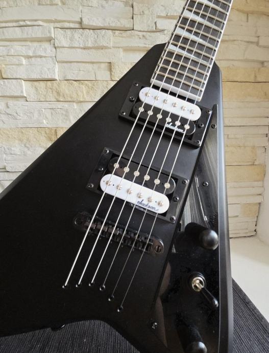 Tijelo je od topole, vrat od javora sa compound promjerom 12" do 16" sa prstohvatom od amarantha sa 24 jumbo praga. Pickupi su high output Jackson, keramički koji se kontroliraju sa 3 polnom sklopkom, žice idu kroz tijelo, hardware je crni. TOM-style kompenzirani most bolji sustain i savršeno prati promjer prstohvata.
