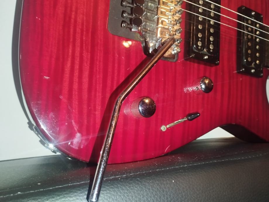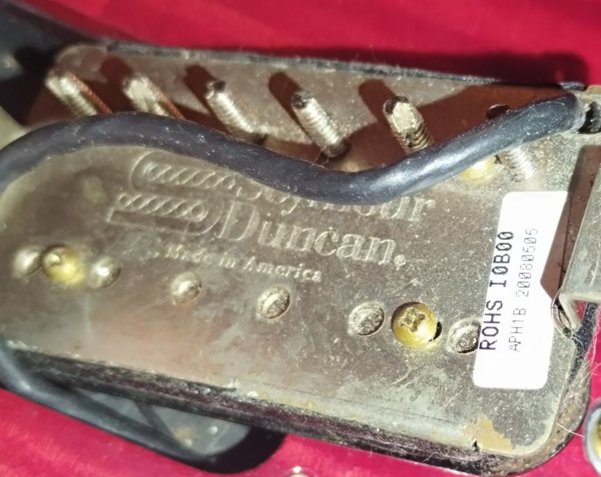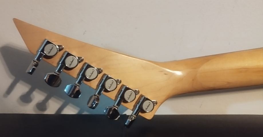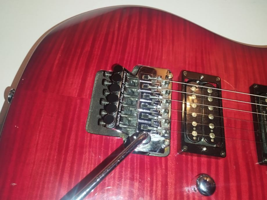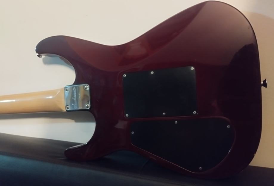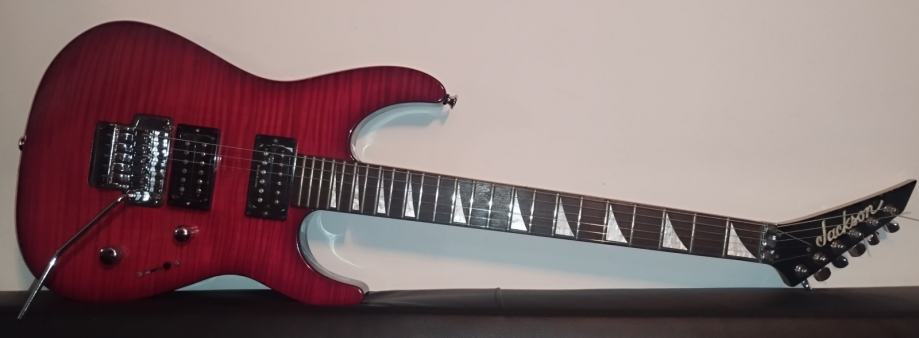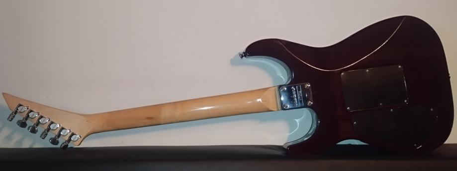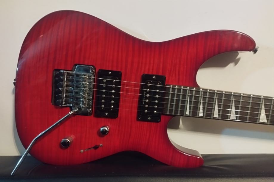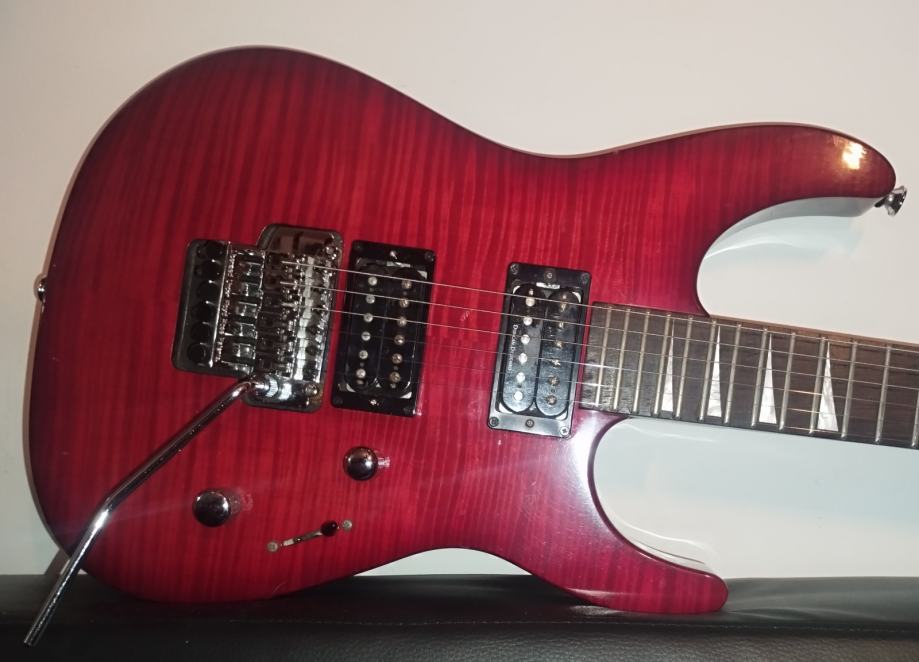 Jackson Dinky Reverse DR3 – body poplar (maple veneer top), maple/rosewood neck, Duncan Designed neck humbucker (DD103N), Seymour Duncan USA bridge humbucker (SD APH-1b Alnico 2 Pro humbucker - u dućanu 130eur), Floyd Rose licenced bridge, nove žice, futrola, Made in Japan.