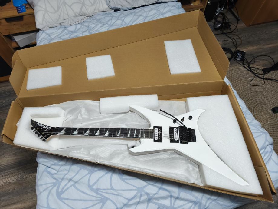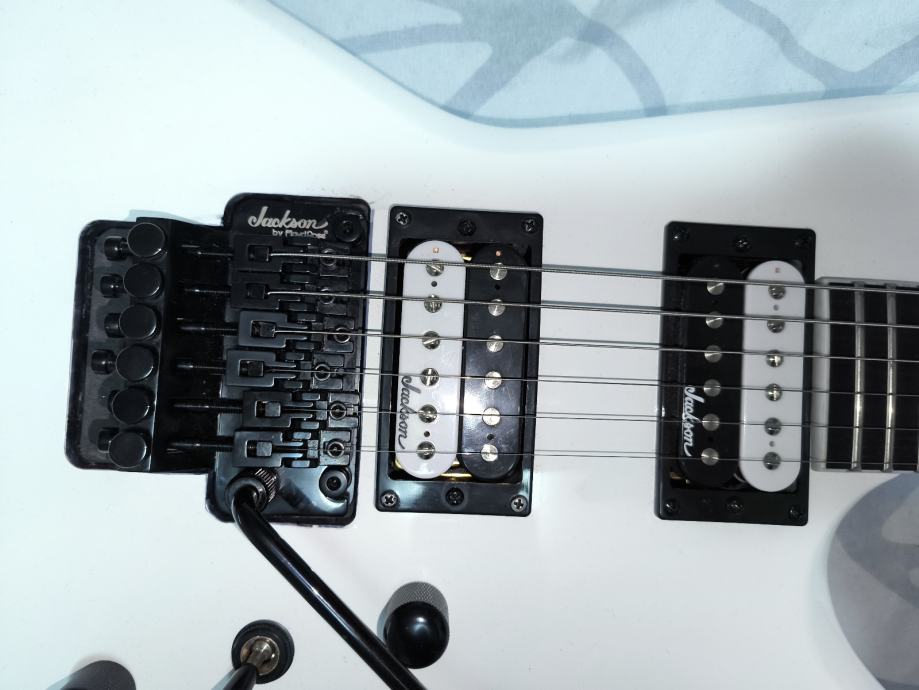 The Warrior JS32 also features a Jackson-branded Floyd Rose double-locking tremolo bridge and die-cast tuners.