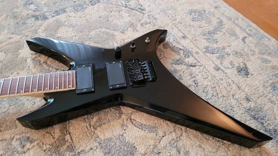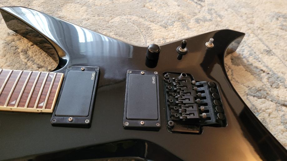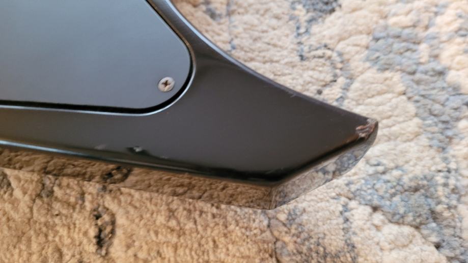 Gitara u dobrom stanju, vidljiva oštećenja na rogovima, obzirom na oblik gitare oštećenja minimalna.