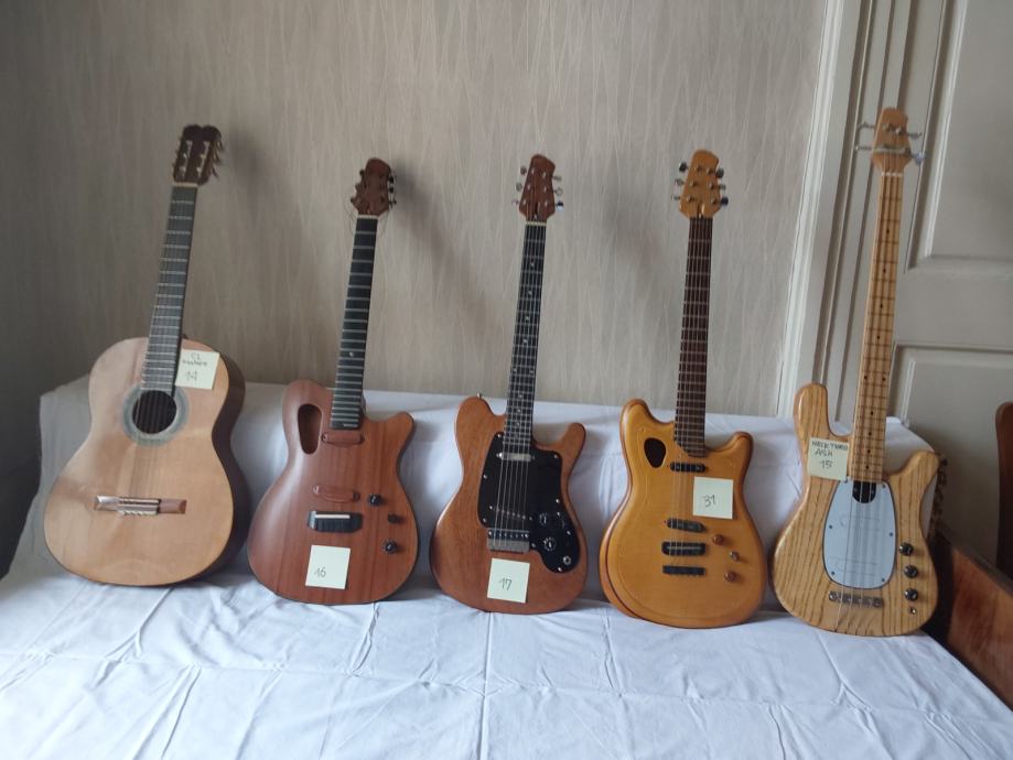 Prodajem komadno gitare iz privatne kolekcije, sve ručni radovi. U kolekciji se nalaze električne gitare i električni basevi. Gitare su vrlo malo svirane, a neke se mogu kompletirati sa magnetima. Gitare su označene rednim brojem. Za više informacija javiti se na telefon sa brojem željene gitare. Cijena svake gitare je zasebna i po dogovoru, raspon od 400 EUR - 800 EUR ovisno o modelu.