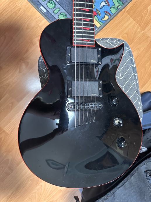 Gitara je iz 2018. godine. Vrat i tijelo su od mahagonija te spojeni set neck konstrukcijom. Fretboard je od macassar ebanovine, radijus samog fretboarda je 14" što uvelike olakšava brzo sviranje, a za dodatnu pomoć tu je i pozadina vrata u satin finishu kako se dlanovi ne bi ljepili za vrat. Ima 24 jumbo praga u savršenom stanju uz 25,5" skalu. Tip bridgea je tune-o matic dok string trough kobilica dodatno daje na sustainu. Od upgradea montirani su aktivni pickupovi EMG 81x/85/x koji su obnovljene varijante regularnih 81/85 magneta te za razliku od njih imaju malo više claritya i "zraka" te malo manje kompresije. Također dodan je i Graphtech Black Tusk XL nut koji štim dovodi na novu razinu te još daje malo "zraka" zvuku gitare. Montirane su i Harley Benton locking mašinice koje uvelike olakšavaju mjenjanje i motanje žica te također popravljaju držanje štima.