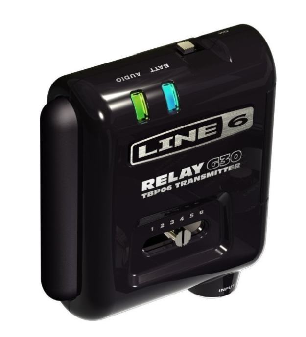 6-channel digital wireless body-pack transmitter. It features Mute and Channel Select control, LED indicators for battery and signal, a 1/4'' TS connector and sturdy construction with 115db dynamic.