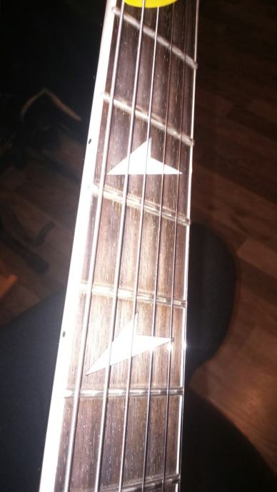 potreban je napraviti setup. nikad brušeni pragovi, mada bi trebalo (ne, nije potrebno mijenjati pragove. onaj ko radi setup, uređuje to jest brusi pragove. cijena je 200kn. meni gitara više ne treba, tako da mi nije interesantno nositi na setup) jumbo pragovi. floyd rose special.