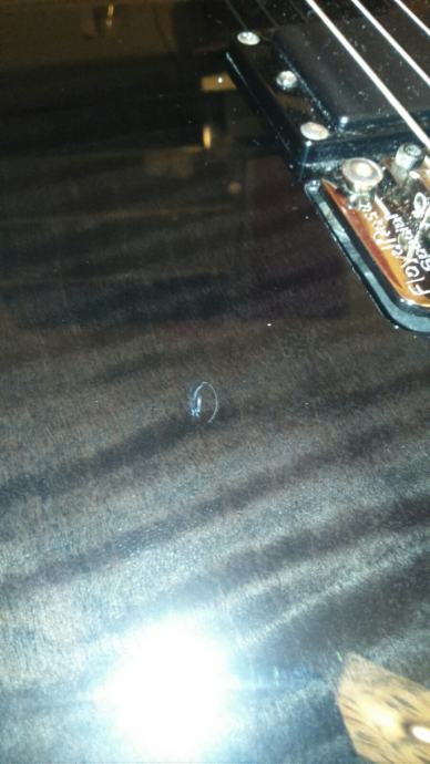 prodajem navedenu gitaru. ima malo, jako malo oštećenje iznad floyd-a. ispala mi je mala (AAA) baterija na gitaru i.... probao sam poslikati oštećenje al toliko je malo da se jedva vidi. trenutno je naljepnica na tom mjestu. ali to je ne bitno.