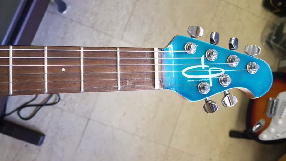 Ernie Ball licencirana gitara, Silhouette oblik Tijelo od lipe, vrat javora i hvataljka od palisandra. Hss konfiguracija pickupa, tremolo.
