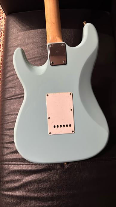 Gitara složena od dijelova. Original Fender vrat i mašinice, dva pickupa tex-mex, za treći nisam siguran ali zvuči jako dobro. Gitara je dobivena pod račun prije nekoliko mjeseci, a sada traži novog vlasnika.