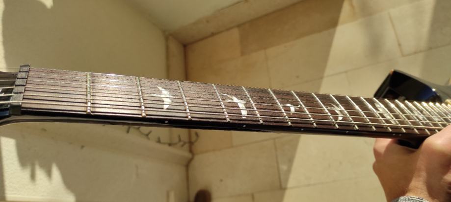 Dakle MINT stanje, prelijepog izgleda, uz nju dolazi i njen gig bag, tremolo rucica i crni truss rod cover ako netko ne voli da mu pise Tremonti na gitari. Gitara je vrhunska, ali kako sam presao na 7 i 8 string gitare ne koristim je uopce ...
