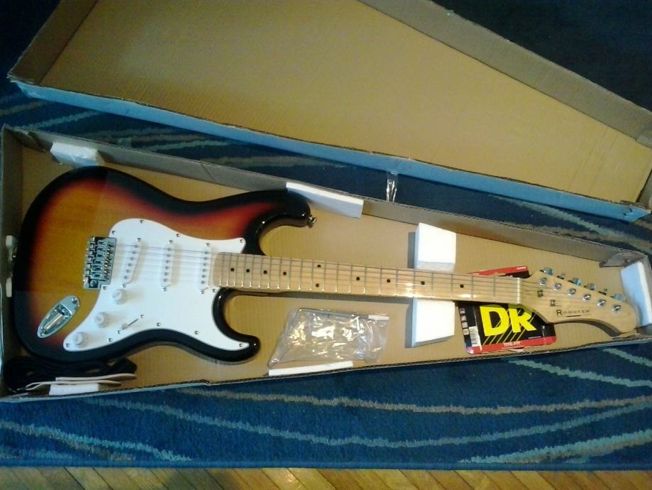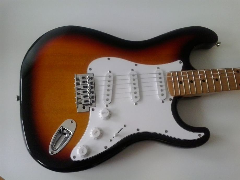 Solidna kopija fender stratocastera (u rangu kvalitete lošijih squiera, staggova, performer gitara). Odličan zvuk , bez ogrebotine, napravljen set up,nove DR žice. (kabel , tremolo ručica, original kutija). Gitara je nova, svirana par puta u sobi.
